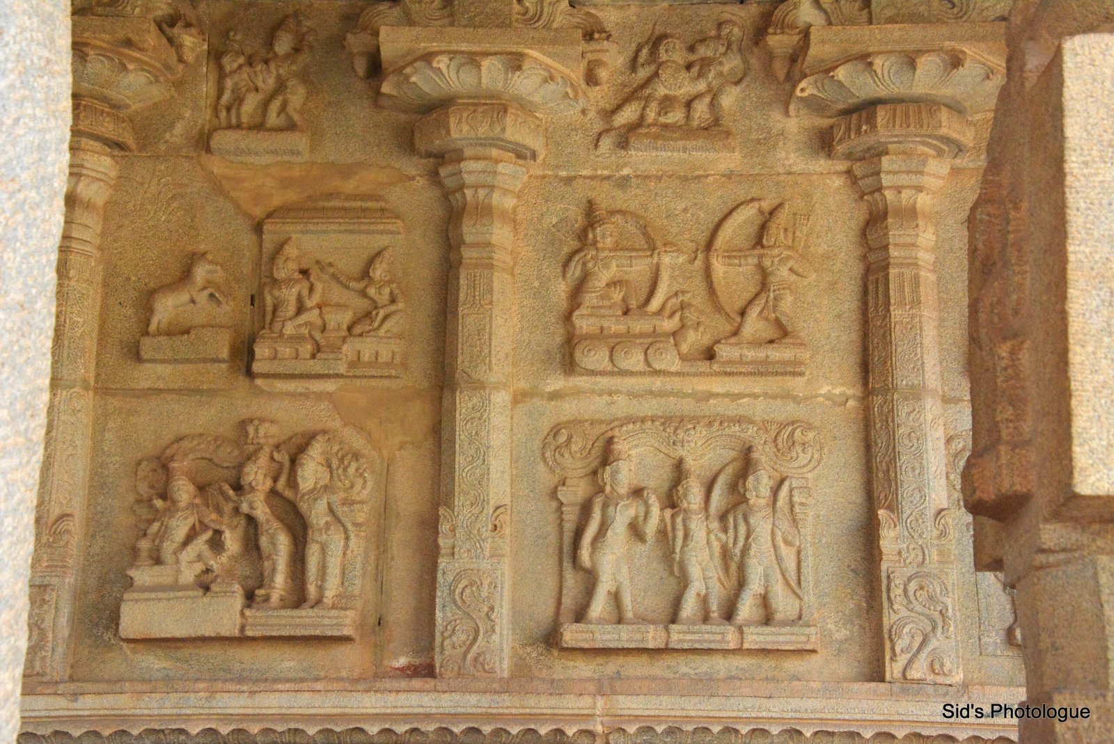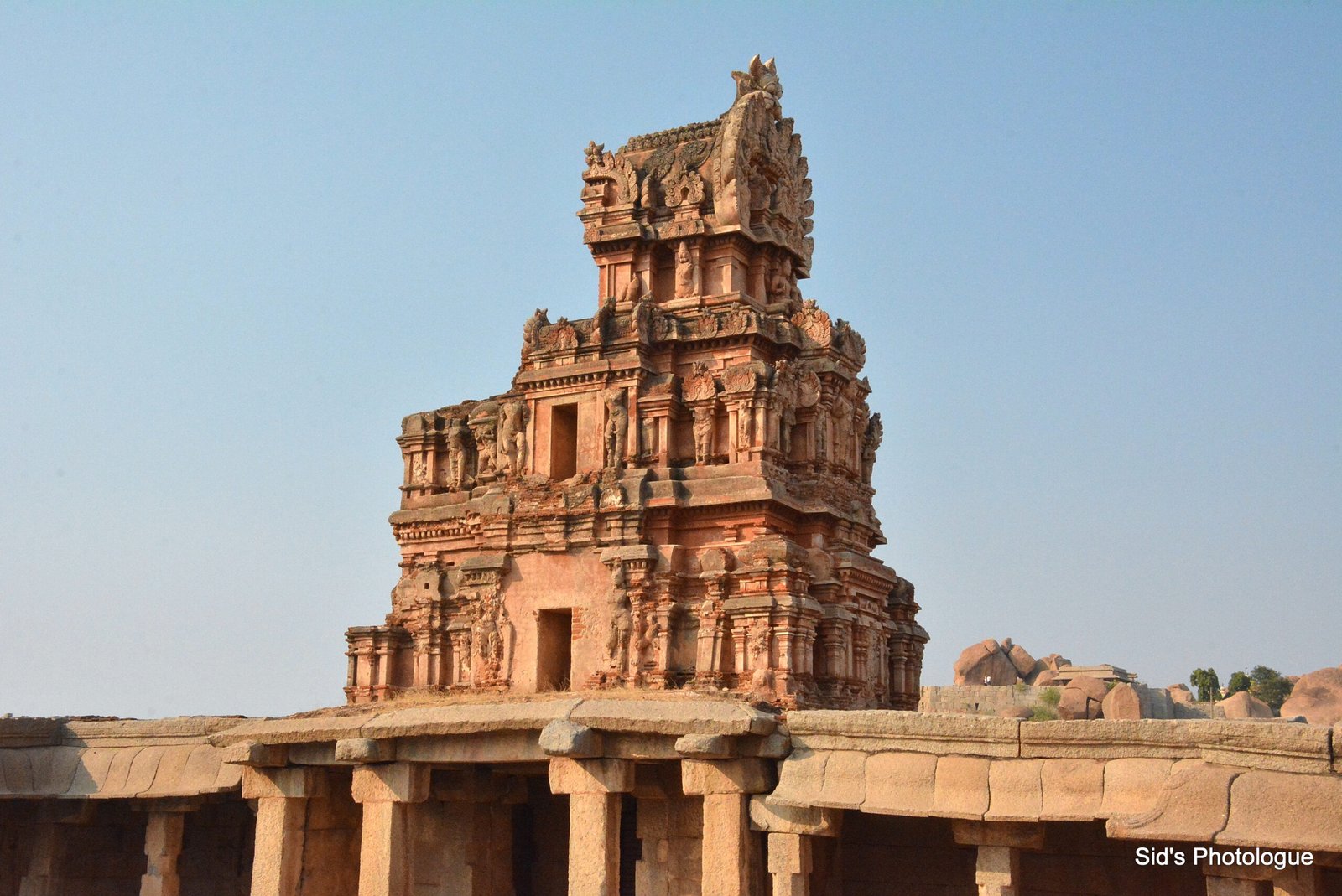The Hazara Rama temple, referred to as the Ramachandra temple in inscriptions, occupied the western part of the urban core in the Royal Enclosure section of Hampi