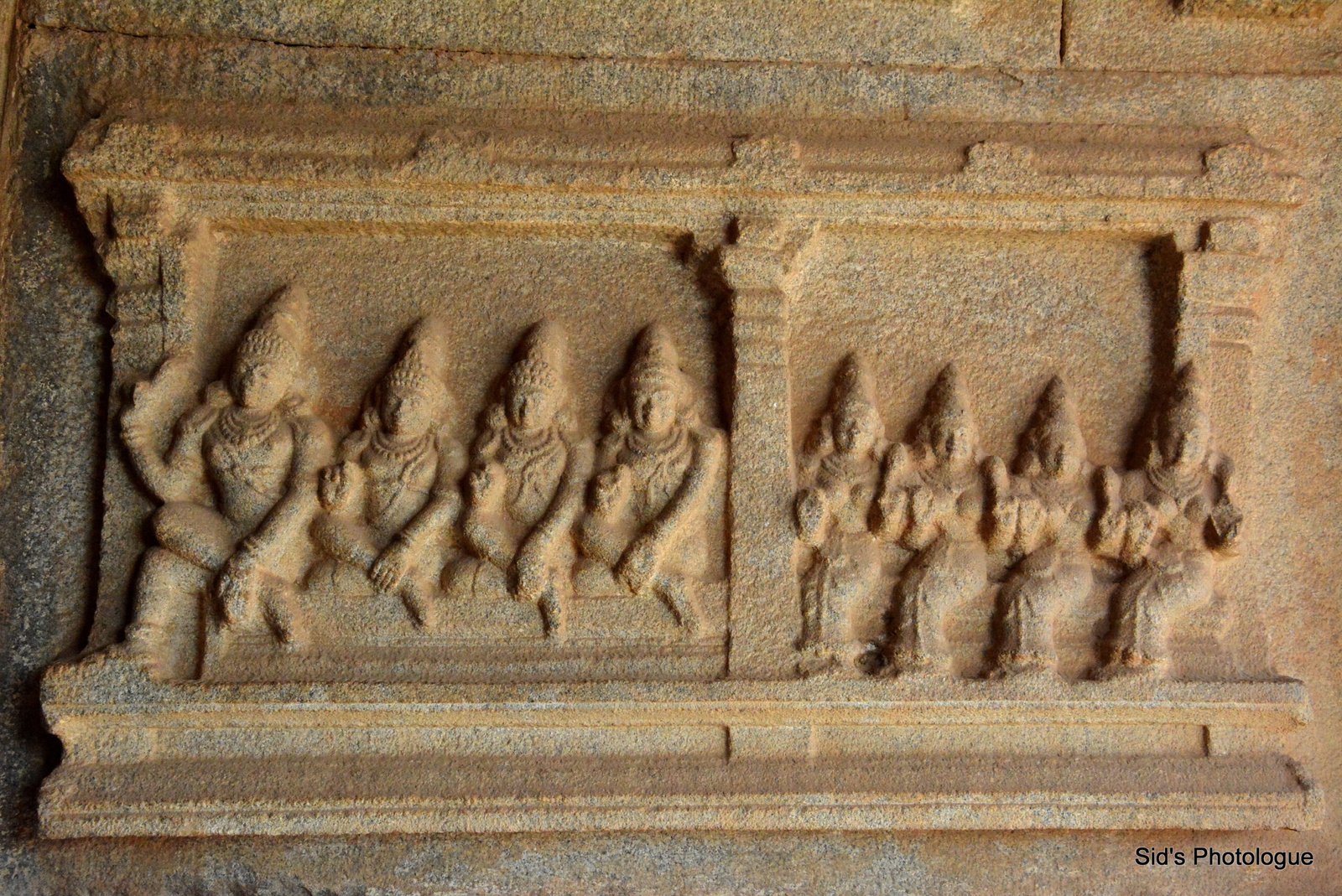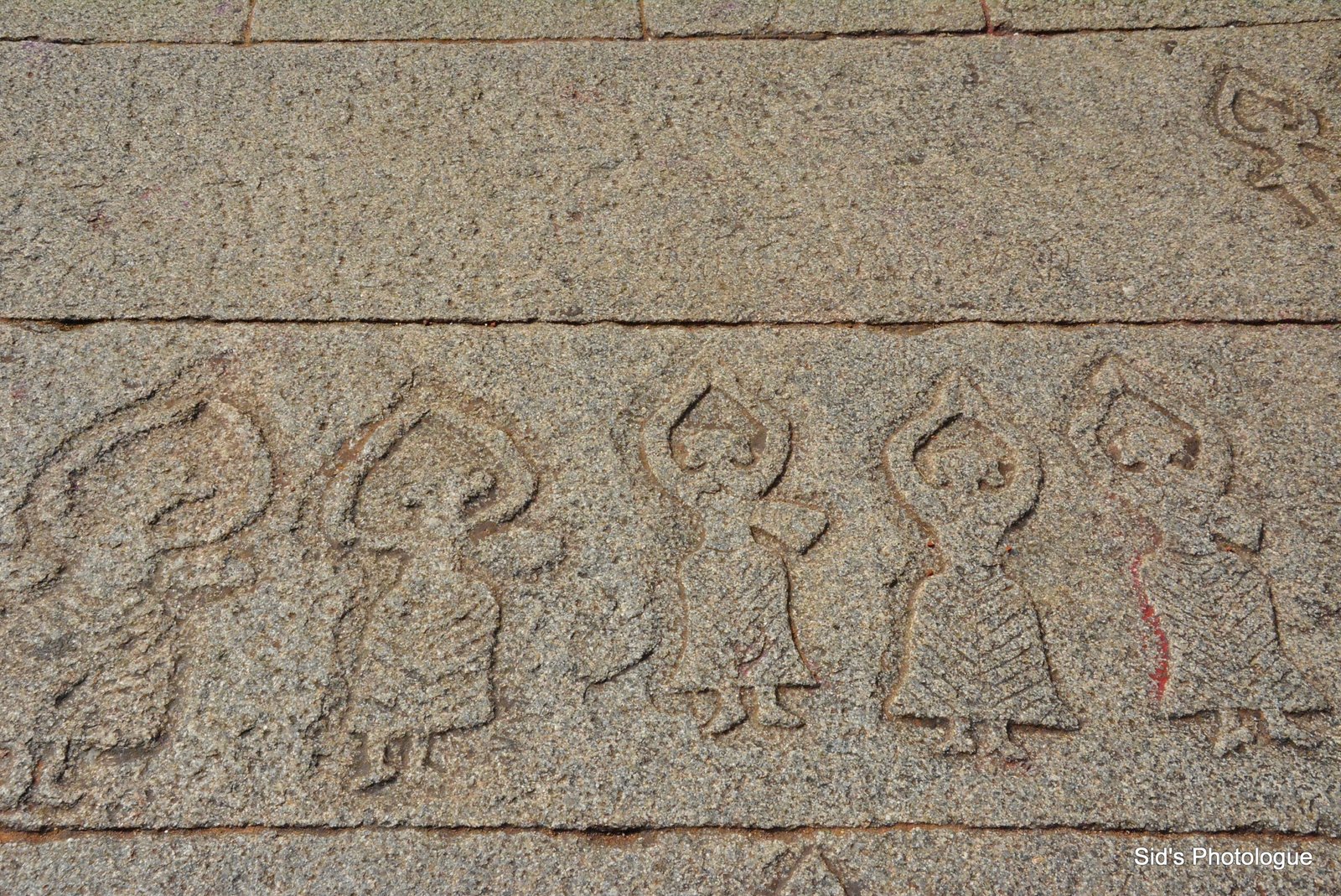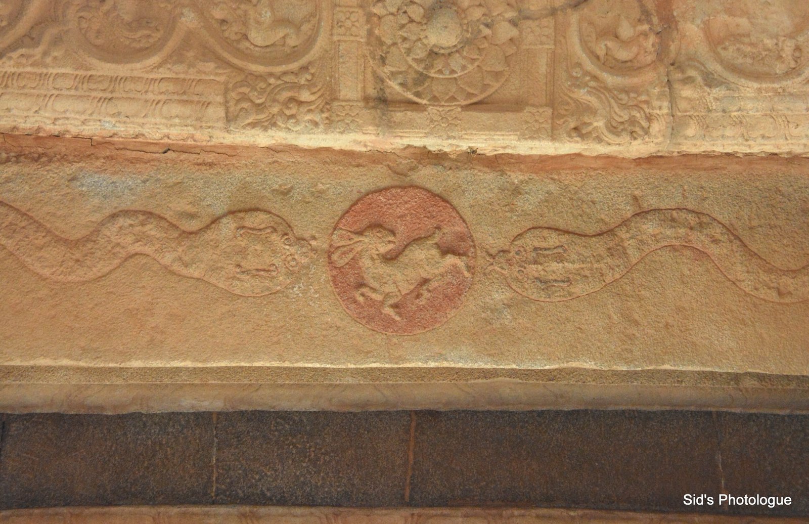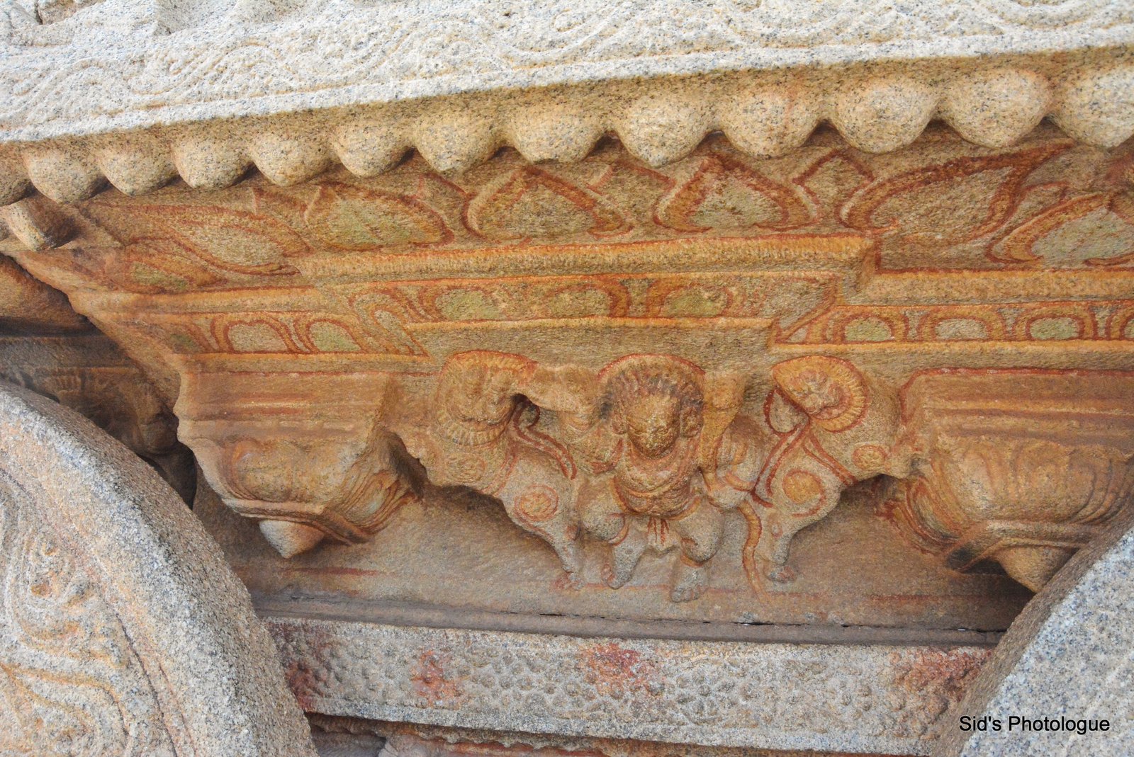 This dotted border is not just for its decor! It is a marvel of engineering design! The granite stone used, has a lot of iron in it. Thus for it not to get rusted & spoil the sculptures with its red tinge, these inverted domes acts as water channels for the rain water to drip as droplets, directly onto the ground & not seep into the carvings, spoiling it!