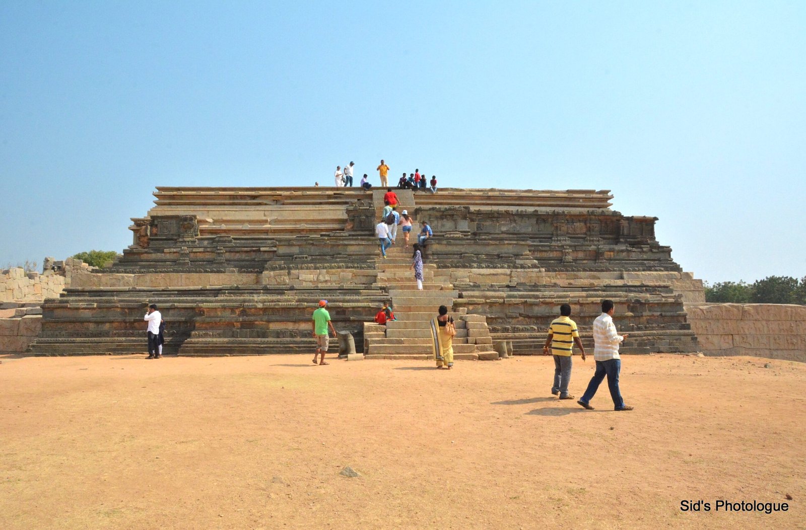 The Mahanavami platform, also called the “Great Platform”, “Audience Hall”, “Dasara” or “Mahanavami Dibba” monument – Is the largest monument in this complex. It has three ascending square stages leading to a large, square platform that likely had a wooden mandapa above it. The mandapa was burnt down during the destruction of Hampi….
