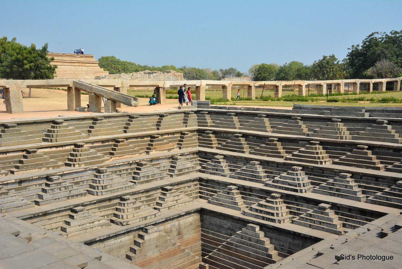 South of the platform is an aqueduct leading water to large, symmetrical, stepped tank made of granite that was excavated by archaeologists in the 1980s…..