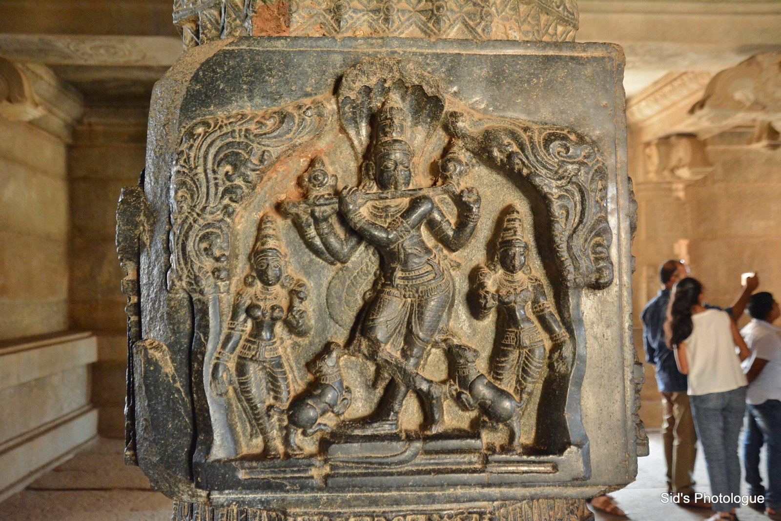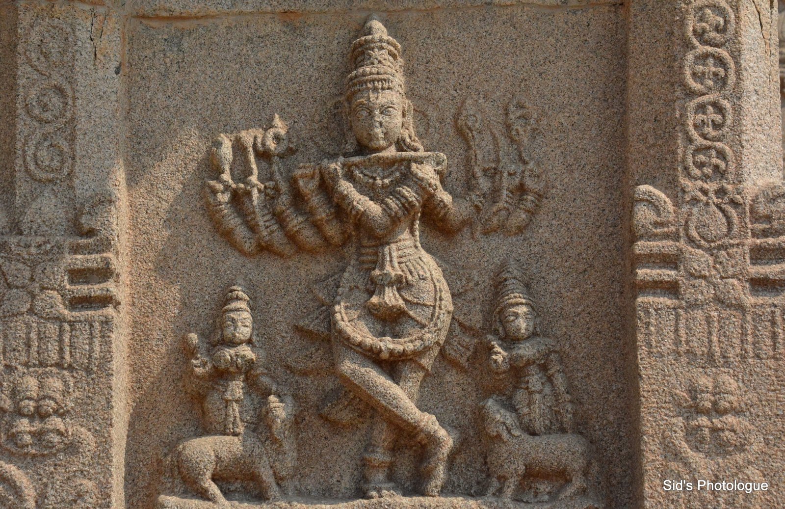 The temple’s outer walls portray other Vishnav sculputres depicting Lord Krishna in various forms – be it playing flute with the Gopikas around him…..