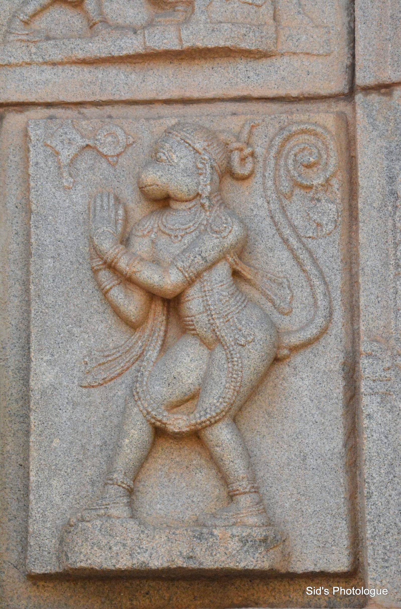 Hanuman sitting on his coiled tail (to raise himself to the level of Raavan) in Lanka