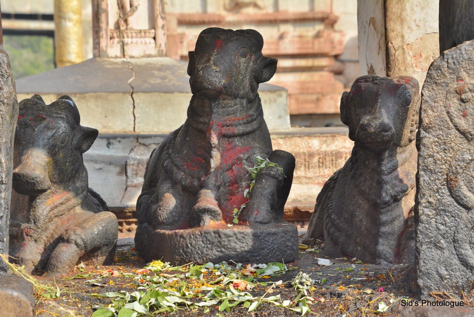 The Narasimha monolith originally had goddess Lakshmi with him, but it shows signs of extensive damage and a carbon-stained floor—evidence of attempts to burn the shrine down. The statue has been cleaned and parts of the shrine have been restored