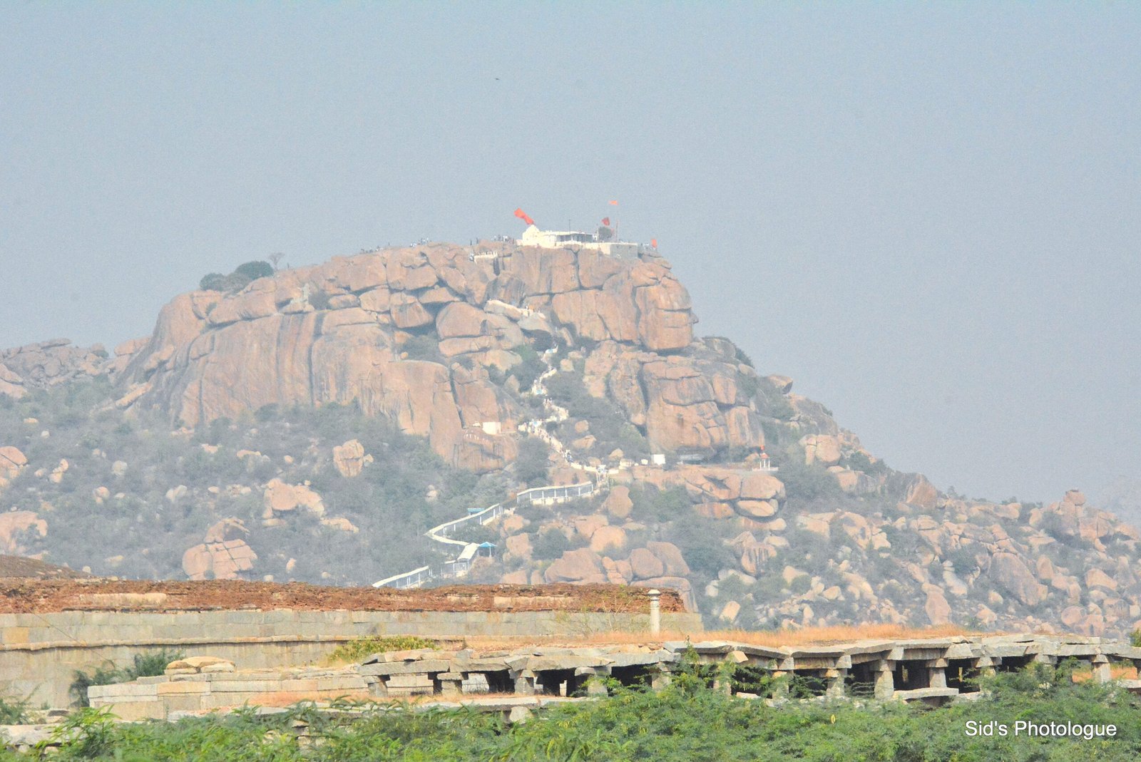 The Anjaneya Hill in Anegundi, is considered to be the birth place of Lord Hanuman and houses a very beautiful Hanuman Temple on top of the hill, also known as Anjana Matha Temple or the Anjaneya Temple. The hill has around 570 steps & a steep climb to reach the temple. THe view from the top of this hill is breathtaking, as one can see entire Hampi city.