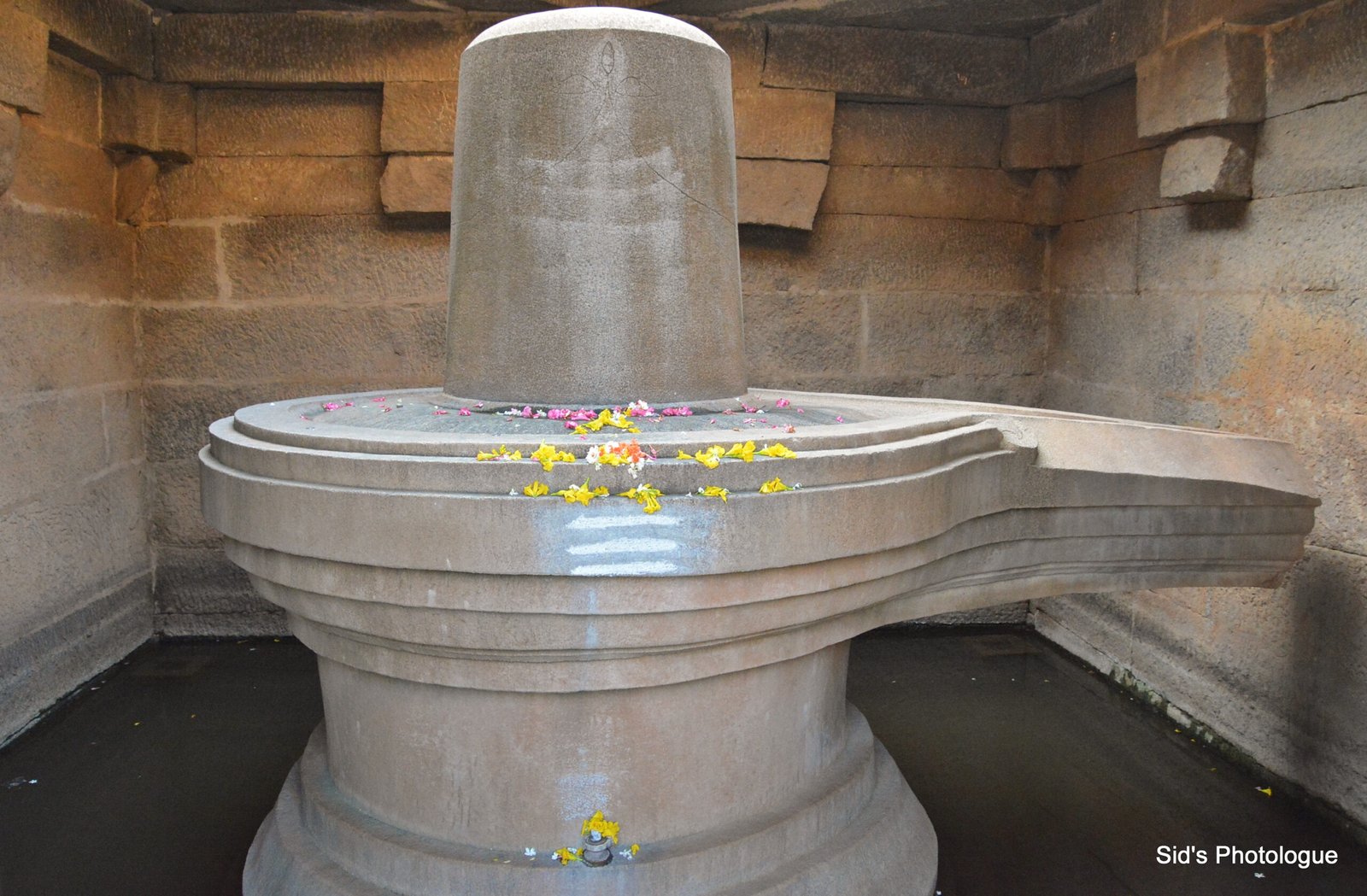 South of the Krishna temple’s exterior are two adjacent shrines, one containing the largest monolithic 3 meter tall Shiva Linga…..