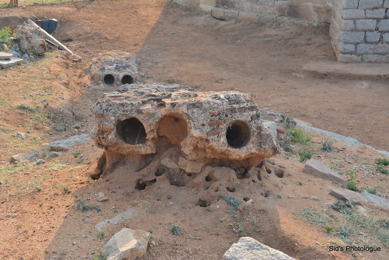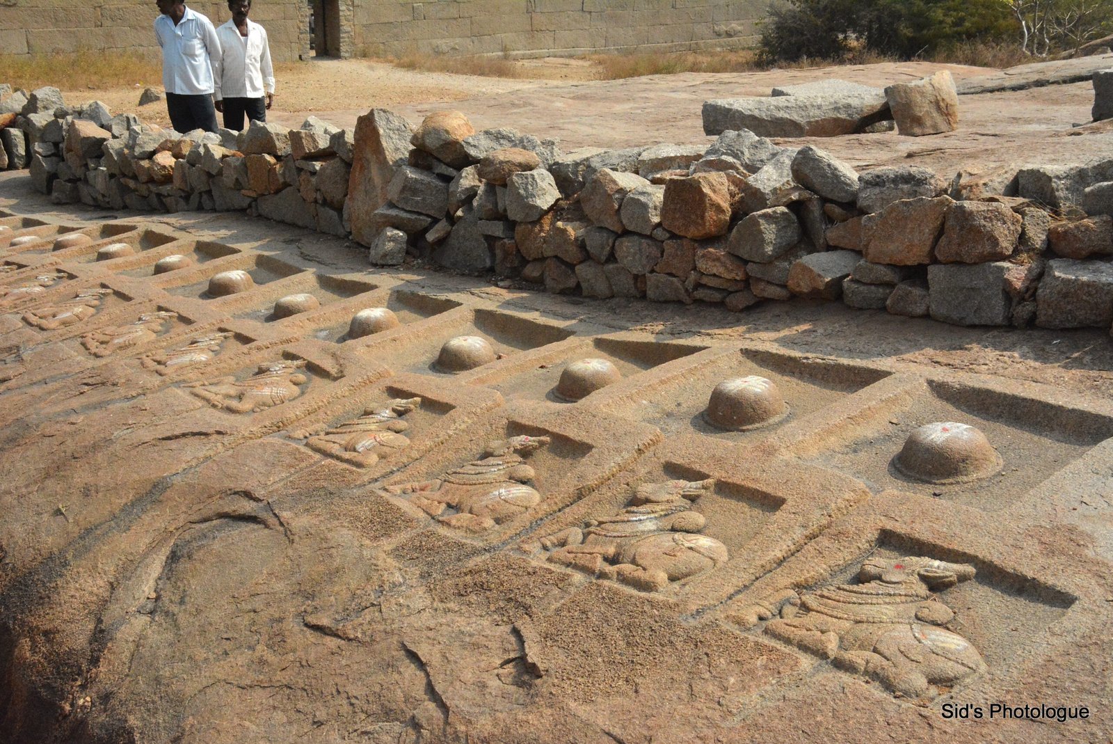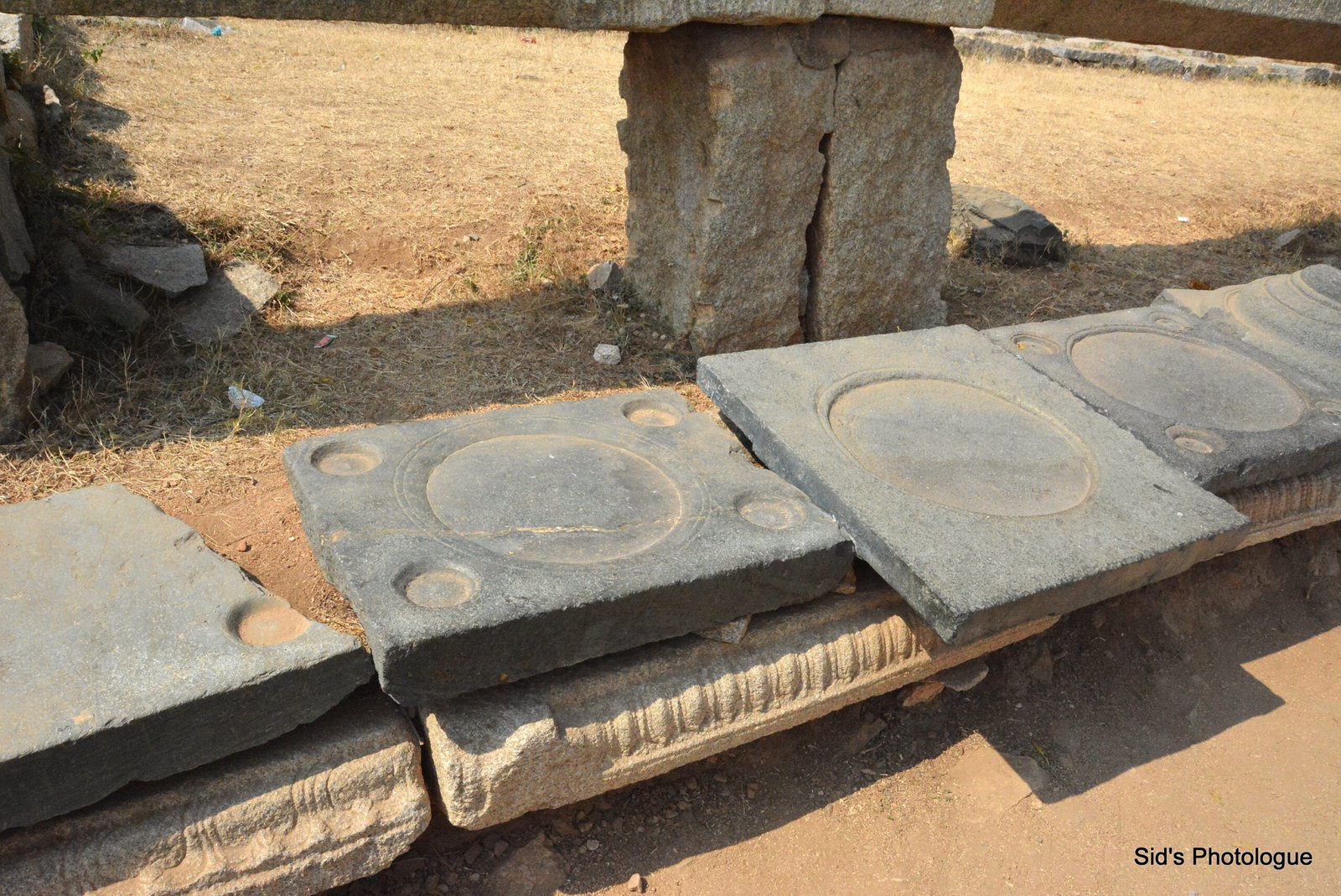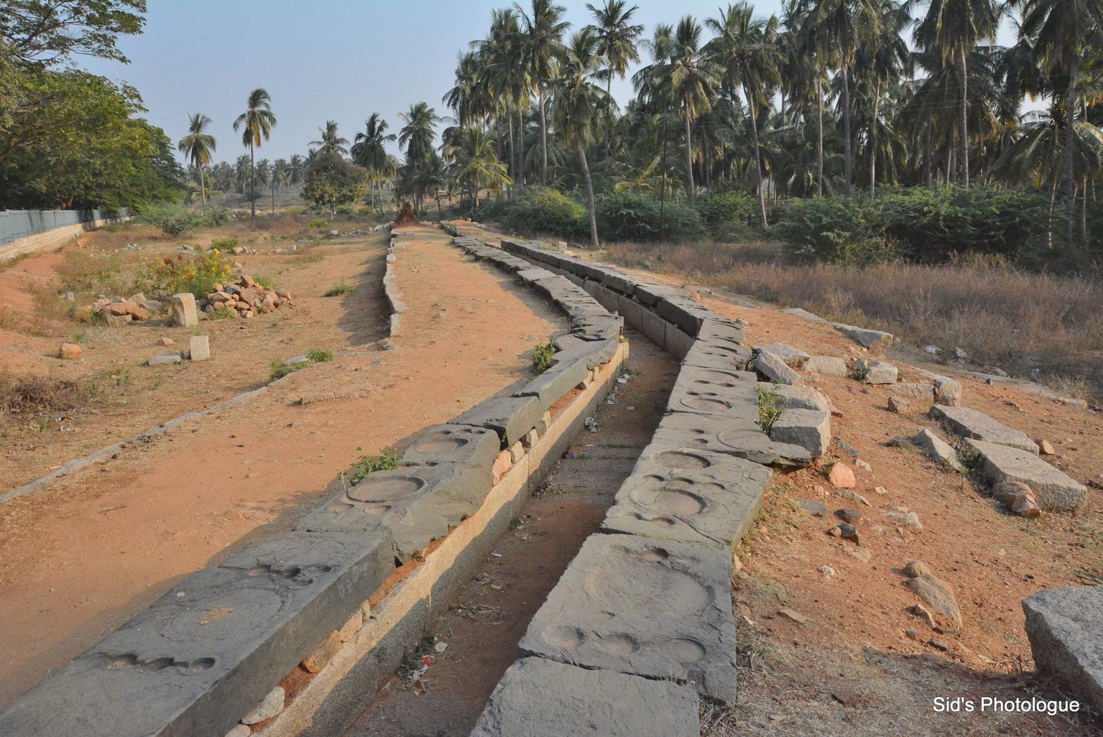 The escavation in Hampi still continues & the archeologists still find newer relics or remnants of civilization, every now & then. This discovery was of a water canal, lined with granite dishes for meals…..