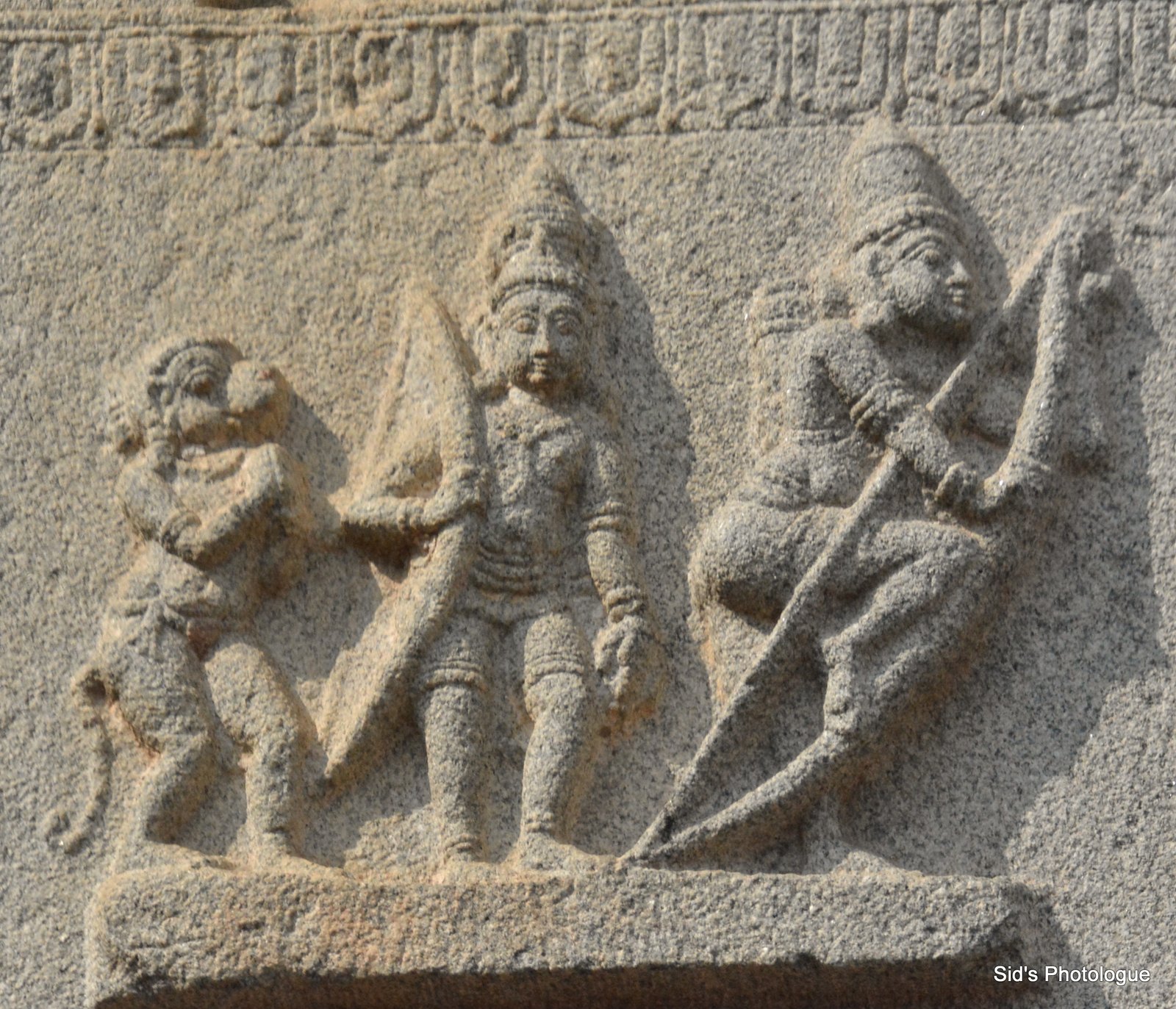 The scenes of Ramayan are spread in three bands across the inner walls of the temple. Thus one needs to do three parikrama of the temple in clockwise direction to compleletely read the story!!