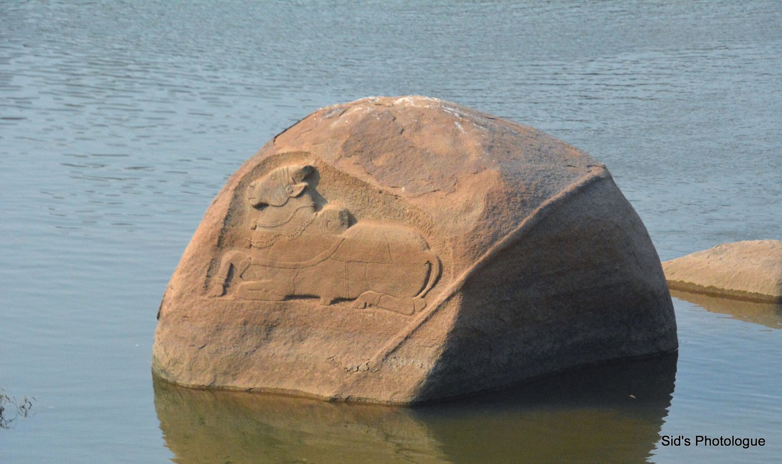 The stones in the river has sevaral intrtricate carvings.